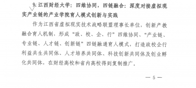 近日,江西省委教育工委、江西省教育厅公布了2022年度江西教育改革创新十佳案例和提名案例,我院报送的《四维协同、四链融合:深度对接虚拟现实产业链的产业91吃瓜 育人模式创新与实践》案例成功入选十佳案例(全省普通本科高校共入选2项)。