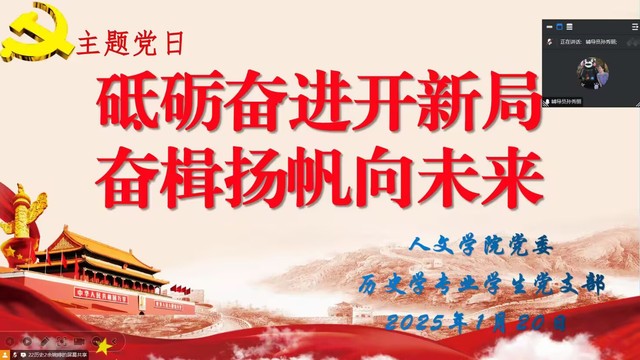 根据学校党委组织部、学院党委的统一安排,2025年1月底,学院各师生党支部组织开展了“砥砺奋进开新局 奋楫扬帆向未来”主题党日活动。活动由各党支部书记主持,全体师生党员参加。