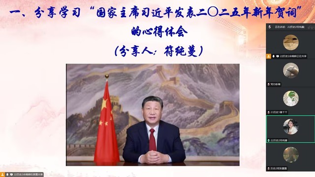 活动中,各师生党支部集中学习了国家主席习近平二〇二五年新年贺词、习近平总书记在中共中央政治局民主生活会上的重要讲话精神、习近平总书记在二十届中央纪委四次全会上的重要讲话精神等内容。随后,全体党员围绕“砥砺奋进开新局 奋楫扬帆向未来”展开主题讨论,交流心得体会。