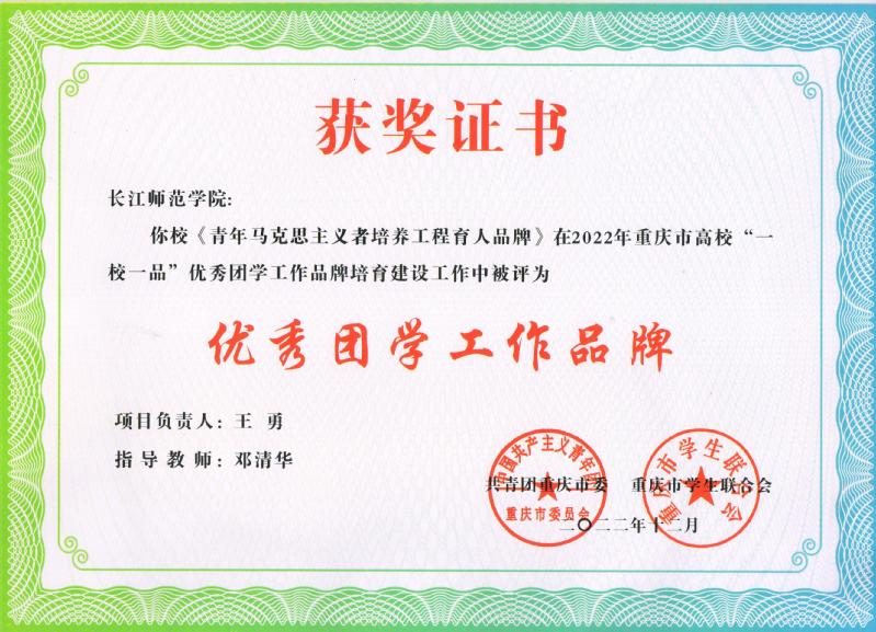 2022年重庆市高校“一校一品”优秀团学工作品牌