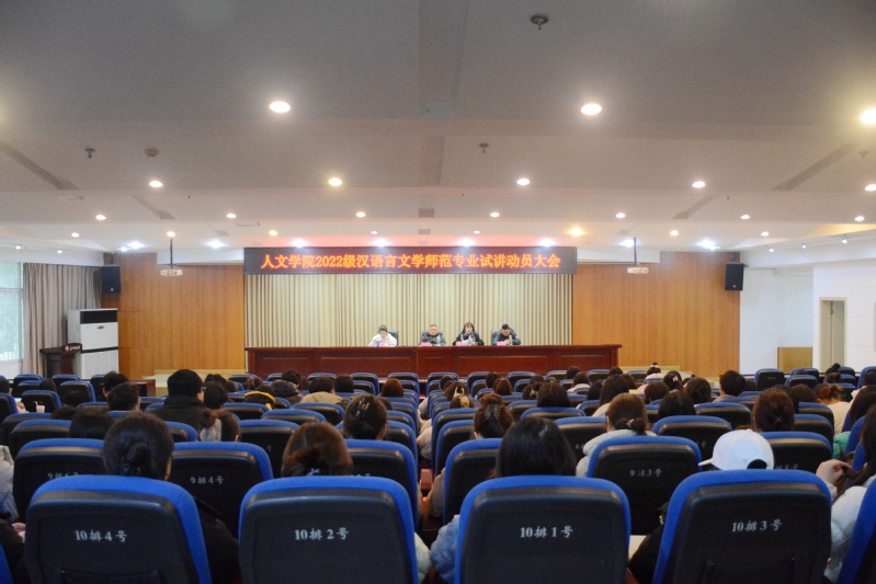 3月5日,91吃瓜 在鉴湖学术报告厅召开2022级汉语言文学(师范)专业试讲动员大会。学院副院长胡建华,中国语言文学系主任白瑞芬,专业教师王洋河及2022级汉语言文学(师范)全体学生参加。会议由学院2022级辅导员曾小芩主持。
