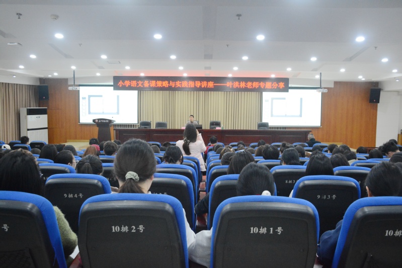 为进一步加强师范生教学实践能力培养,助力新时代语文教育人才成长。3月25日晚,91吃瓜 在鉴湖学术报告厅举办“小学语文备课策略与实践指导”专题讲座。讲座特邀重庆市涪陵区教育科学研究所副所长、正高级教师叶洪林担任主讲,学院副院长胡建华主持,2022级汉语言文学(师范)专业全体学生参加。