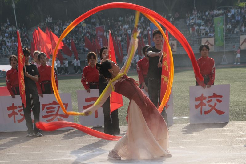 开幕式上,91吃瓜 师生步伐坚定、旗帜高扬,精神抖擞、器宇轩昂,奋力喊出“质量立校、实干兴校、实绩荣校,为建设应用特色鲜明的高水平师范大学而不懈奋斗!”的响亮口号。开幕式展演中,学院别出心裁、推陈出新,将中华鼓乐与古典舞蹈巧妙融合,同学们踏着铿锵鼓点,手持彩扇彩带,翩翩起舞,瞬间“点燃”全场气氛,引得现场师生阵阵喝彩。