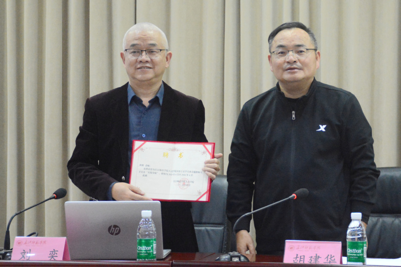 讲座前,胡建华代表学院向刘奕老师表示热烈的欢迎和衷心的感谢,高度赞许刘奕老师在基础教育领域的深厚造诣与实践经验,并向刘奕老师颁发了汉语言文学专业卓越教师人才培养“实践导师”聘书。