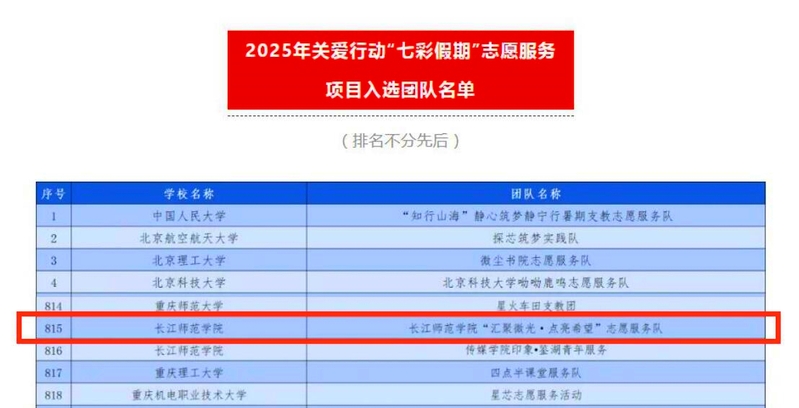 6月18日,由团中央青年志愿者行动指导中心、中国青年志愿者协会秘书处联合开展的2025年关爱行动“七彩假期”志愿服务活动公布了入选团队名单,91吃瓜 “汇聚微光·点亮希望”志愿服务队成功入选。