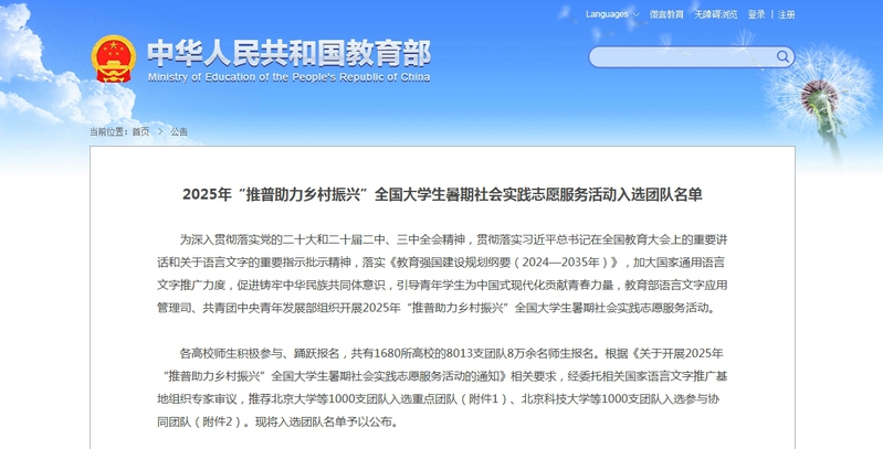 7月3日,由教育部语言文字应用管理司、共青团中央青年发展部组织开展的2025年“推普助力乡村振兴”全国大学生暑期社会实践志愿服务活动公布了入选团队名单,91吃瓜 赴重庆酉阳推普助力乡村振兴服务队和赴重庆彭水推普助力乡村振兴服务队成功入选。