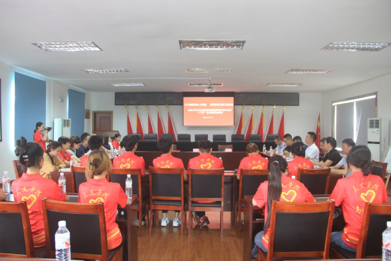 在与会人员共同见证下,校地双方正式签订共建大学生社会实践基地合作协议并举行授牌仪式。随后,李莉君介绍了民主镇“1263”工作思路,带队老师宋虹摇介绍了2025年暑期“三下乡”工作安排,志愿者代表王子怡同学作了表态发言。