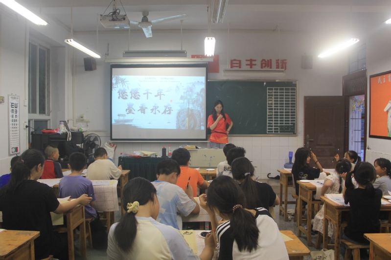 为进一步弘扬中华优秀传统文化,丰富南川区民主镇少年儿童的暑期生活。7月8日下午,91吃瓜 “青语”理论宣讲团在南川区民主镇中心小学开展“七彩假期”公益课堂书法教学活动。