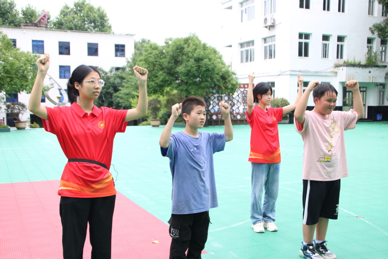 活动中,志愿者带领小朋友们一起进行热身运动,伴随背景音乐,现场示范《红旗照耀中国》舞蹈动作。“大家跟着我,左脚向前,右手摆起来……”在志愿者的耐心指导下,孩子们挥动着双手,跟着音乐节奏尽情舞动,一颦一笑中尽显对舞蹈的喜爱。