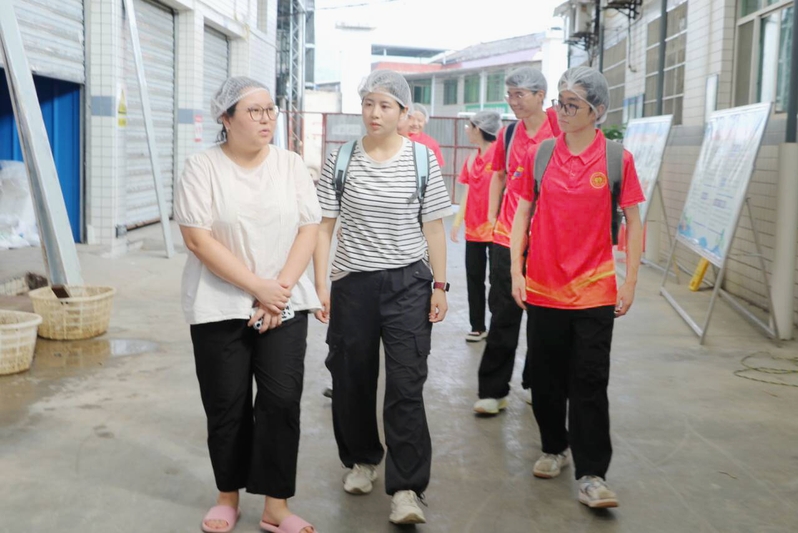 在重庆胖子妈食品有限公司,志愿者实地调研榨菜生产、加工、销售、产品开发等情况。据了解,公司持续拓展延伸榨菜成品产业链,新建深加工生产线,开发盐菜、冲辣菜、榨菜酱油等产品,为周边村民提供就业机会,有效带动老百姓增收致富。