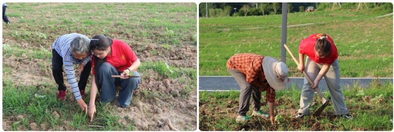 活动中,志愿者与村民深入交流向日葵种植方法和注意事项,一场别开生面的助农实践之旅正式开启。挥锹铲土、播种施肥、提水浇灌......志愿者化身为“田间耕耘者”,大家各司其职、共同协作,忙碌的身影交织成动人的劳作图景。新播种的土地,承载着集体协作的智慧结晶,浸润着辛勤的汗水,更寄托着乡村振兴的美好愿景。