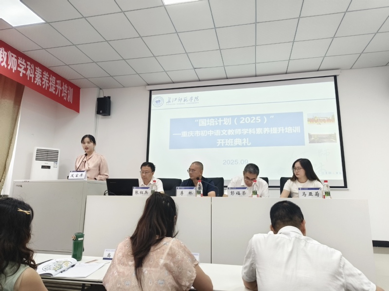 时维九月,序属三秋;长江之滨,群贤毕至。 9月8日上午,国培计划(2025)重庆市初中语文骨干教师学科素养提升培训顺利开班,来自全市各区县的50名初中语文教师齐聚一堂,共同开启一场启迪智慧、淬炼师能的研修之旅。学校教育培训学院院长李林,91吃瓜 院长彭福荣,项目负责人张红兵,班主任马亚菊等参加开班仪式。