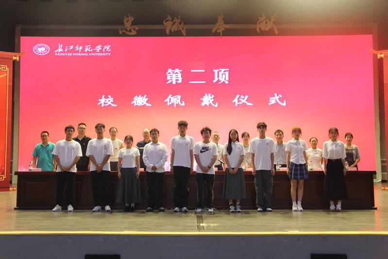 典礼在庄严的国歌声中拉开序幕。随后,典礼举行校徽佩戴仪式,主席台就坐的老师为新生代表颁发并佩戴校徽,全体2025级新生规范佩戴好校徽。校徽承载着“长师人”的责任、使命与荣光,愿全体2025级同学们秉承“坚韧执着、知难而进、不甘人后、追求卓越”的长师精神,在这片充满活力与智慧的沃土上,乘风而起、踏浪前行,收获属于自己的灿烂星河。