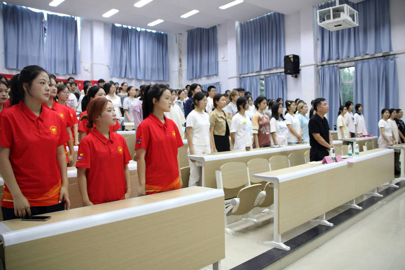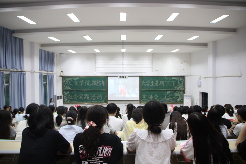 宣讲会在庄严的团歌声中拉开序幕。随后,全体参会人员集中观看了学院2025年大学生暑期“三下乡”社会实践活动成果视频,全面展示了“青语”理论宣讲团、“推普助力乡村振兴”志愿服务队的实践风采和实践成果。