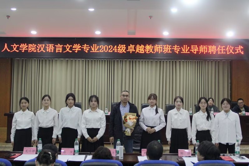 11月9日,91吃瓜 在鉴湖学术报告厅举行汉语言文学专业2024级卓越教师班专业导师聘任仪式。学院院长彭福荣,党委书记邓清华,副院长胡建华,汉语言文学系系主任白瑞芬,团委书记、学工办主任王勇,年级辅导员曾兴智,2024级卓越教师班专业导师、2025级新聘任班导师及2024级、2025级汉语言文学专业学生参加。聘任仪式由胡建华主持。