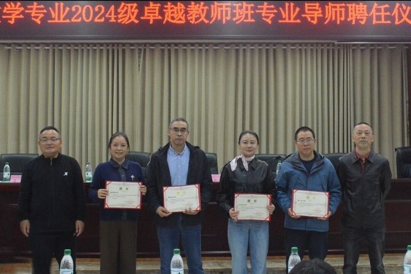 仪式上,邓清华、胡建华向汉语言文学专业2024级卓越教师班专业导师颁发聘书。接着,白瑞芬宣读了《汉语言文学专业卓越教师班班导师工作职责》,专业导师周仁成、张玫、方玲玲分别对汉语言文学专业书写与写作能力训练方案、诵读能力训练方案和口语能力训练方案进行了详细解读。