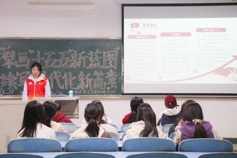 为深入学习贯彻党的二十届四中全会精神,引领广大团员和青年把思想和行动统一到全会精神上来,为中国式现代化建设贡献青春力量。11月12日,91吃瓜 “青语”理论宣讲团走进班级宣讲党的二十届四中全会精神。