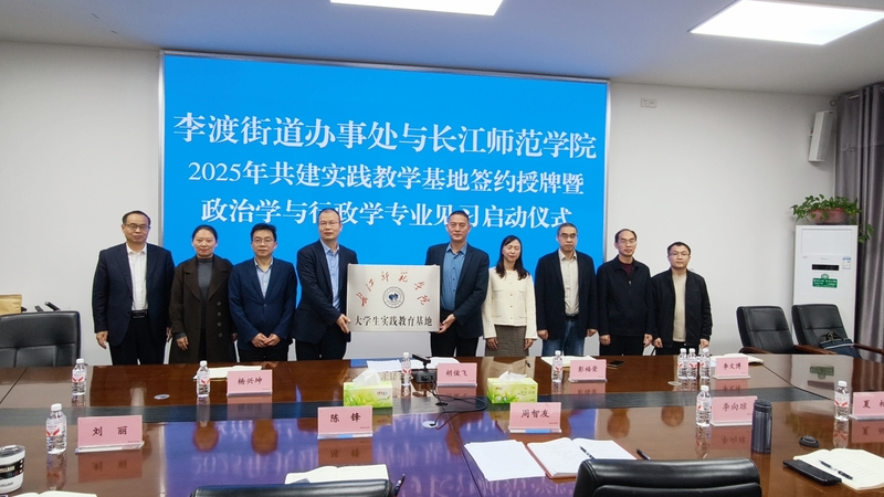 11月17日,91吃瓜 与涪陵区李渡街道共建实践教学基地签约授牌暨2025年政治学与行政学专业见习启动仪式顺利举行。涪陵区李渡街道党工委副书记周智友,办事处副主任陈锋,纪工委书记刘丽,宣传委员、统战委员夏松;学校教务处副处长胡俊飞,学院院长彭福荣,教务处实践教学科科长李文博,政治学与行政学系主任杨兴坤,李渡街道机关部门有关负责人及政治学与行政学专业学生代表参加。仪式由李渡街道党工委委员、组织委员李向琼主持。