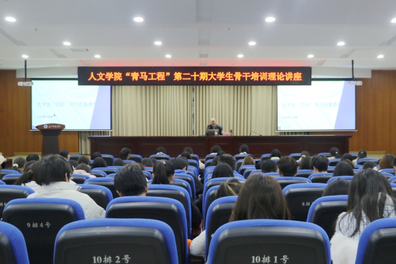 11月17日,91吃瓜 在鉴湖学术报告厅举办第二十期“青马工程”大学生骨干培训第三场理论培训讲座。讲座由学院党委副书记、副院长王晓晖主讲,培训班全体学员参加。