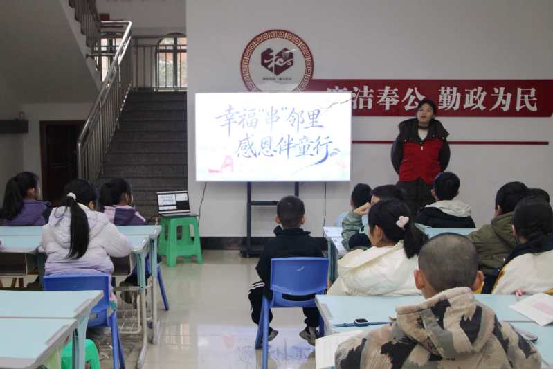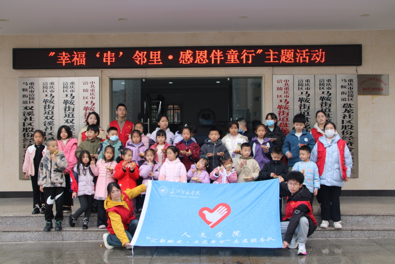 为进一步弘扬中华民族传统美德,厚植少年儿童感恩情怀,搭建邻里温情桥梁。11月22日,91吃瓜 组织青年志愿者到涪陵区马鞍街道盘龙社区开展“幸福‘串’邻里·感恩伴童行”公益课堂活动。