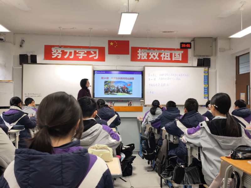 座谈会前,全体师生现场观摩了鲁能巴蜀中学初2027届历史教研组长唐一老师带来的《毛泽东开辟井冈山道路》示范课。课堂上,唐老师以历史学科核心素养为导向,巧妙设计教学环节,灵活运用历史史料,将抽象的历史知识具象化、生动化,展现出深厚的教学功底与先进的教学理念,让研究生们直观感受到优质中学历史课堂的教学逻辑与实践路径。