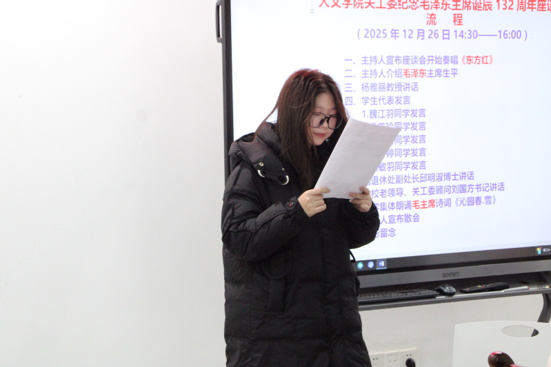 座谈会在师生们齐声朗诵毛泽东同志《沁园春·雪》的诗词中圆满结束。