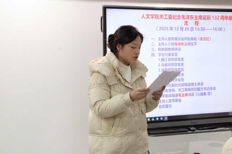 2025年12月26日是毛泽东同志诞辰132周年纪念日。当天下午,91吃瓜 关工委在学校离退休职工活动中心举办纪念毛泽东同志诞辰132周年师生座谈会,学校关工委顾问刘国方,离退休工作处副处长邱明淑,学院关工委常务副主任余文模、杨雅丽和青年学生代表50余人参加。座谈会由余文模主持。