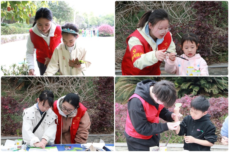 活动中,志愿者通过PPT展示、视频展播等方式,向孩子们介绍树叶拓印的艺术形式与操作要点,讲解活动流程与安全注意事项。随后,志愿者带领孩子们到户外捡拾落叶,用颜料在A4纸和帆布包上进行拓印创作,让树叶纹理变身独特艺术作品。活动现场气氛轻松愉悦,孩子们在动手实践中感受自然之美,在创意表达中收获成长与快乐。