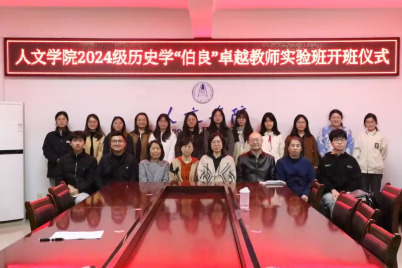 仪式上,石怡介绍了举办“伯良”卓越教师实验班的初衷、目标和意义,解读了卓越教师实验班综合素养、教学技能、实践实习等模块的课程设置及结业考核要求。随后,“伯良”班指导老师李艳、崔鲜香、罗自强、马帅分别结合史料研读、论文写作、课堂教学能力训练等内容作了交流发言。