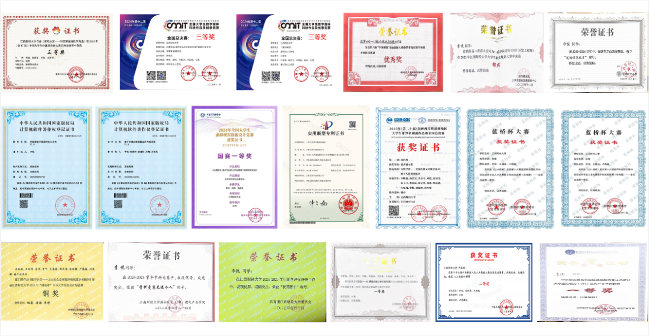 她累计斩获国家级奖项8项,省级、校级荣誉十余项。每一项荣誉的背后,都是她夜以继日的钻研与坚持,是与团队成员并肩作战的默契与信任,更是她不断突破自我、追求卓越的生动写照。